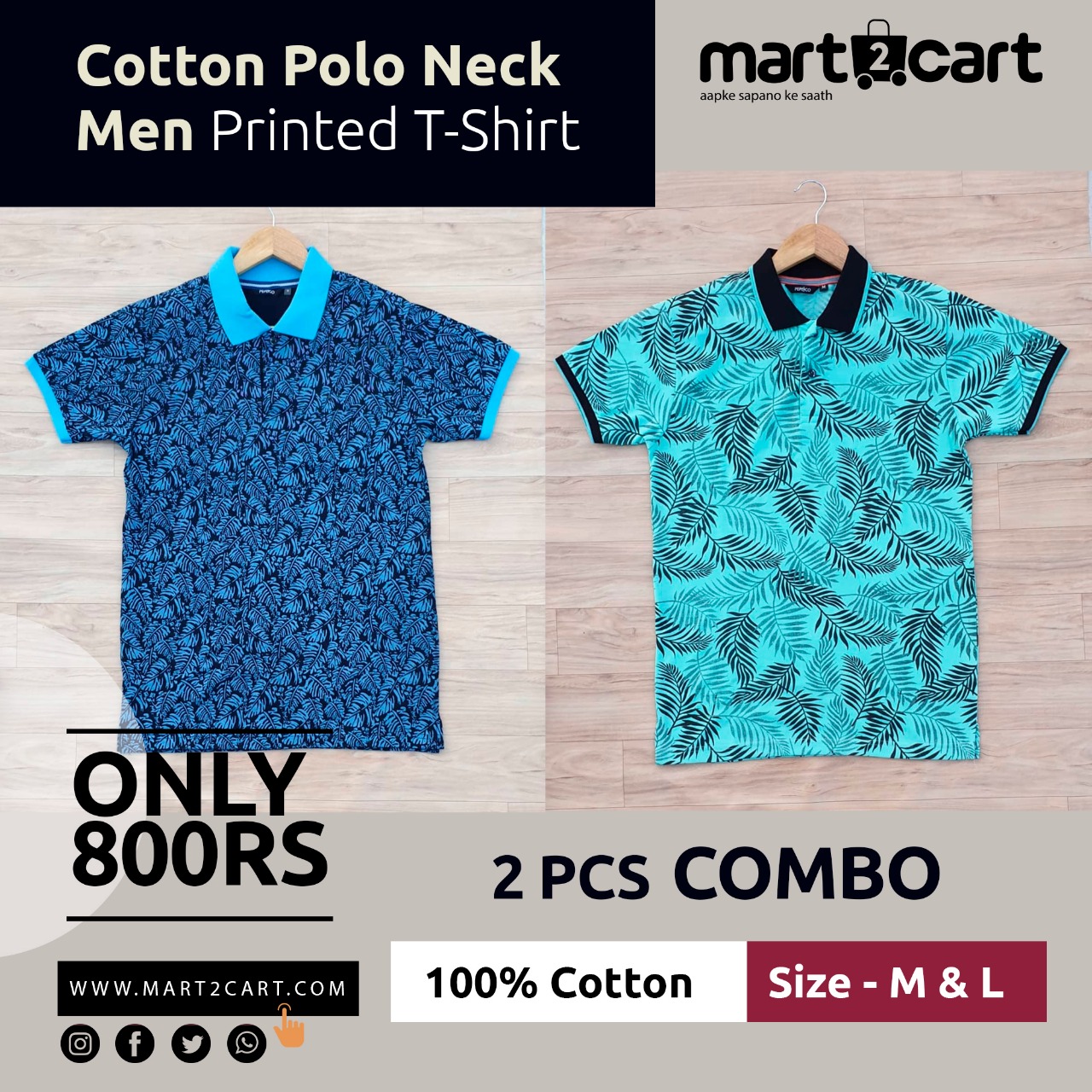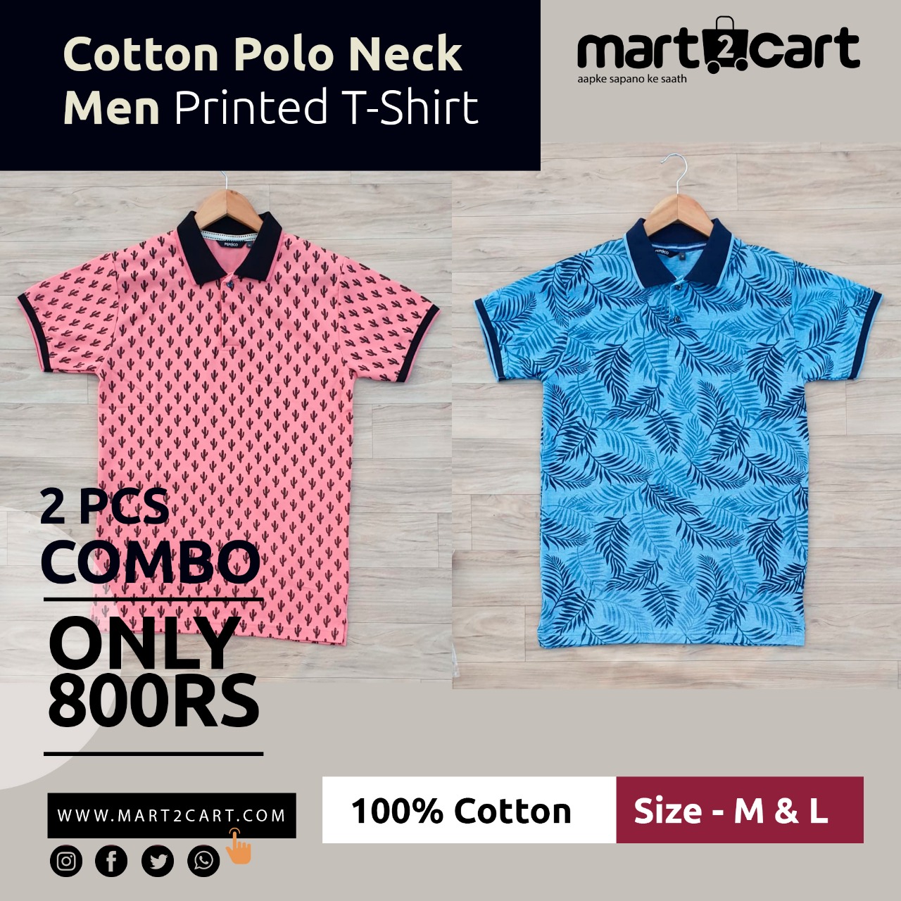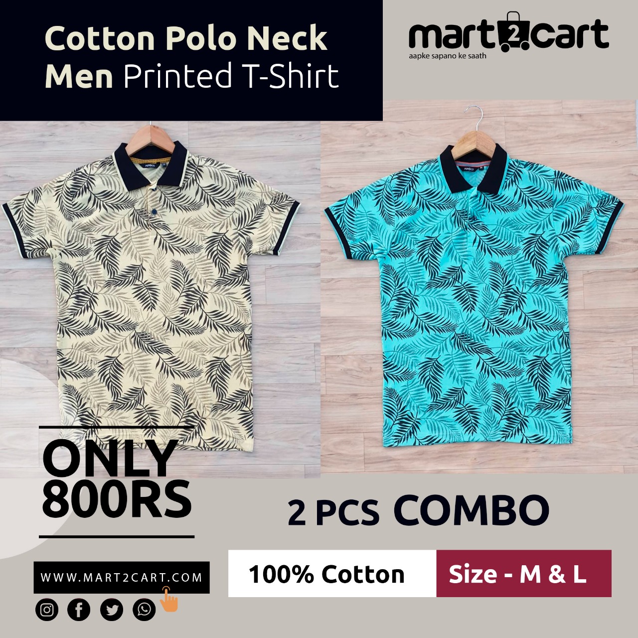 2 PCS PACK Cotton Polo Neck Men Printed T-Shirt