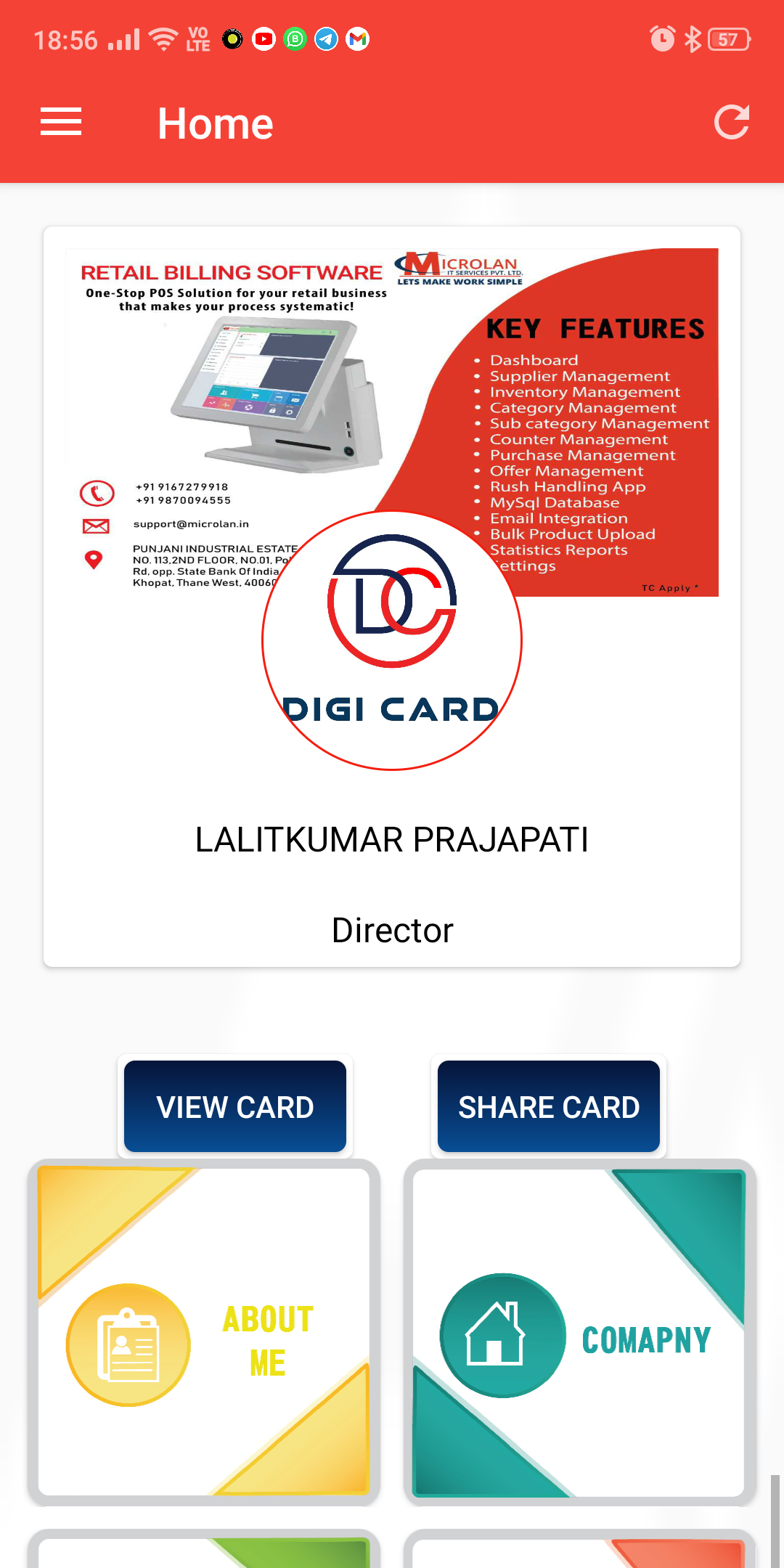 Design your digital visiting card in 2 minutes - it's easy, elegant and free. DIGI CARD is always in your pocket, never tears and never runs out. Your Digital Visiting Card can be easily updated with our user-friendly dashboard, so you won't need to re-print a business card again.